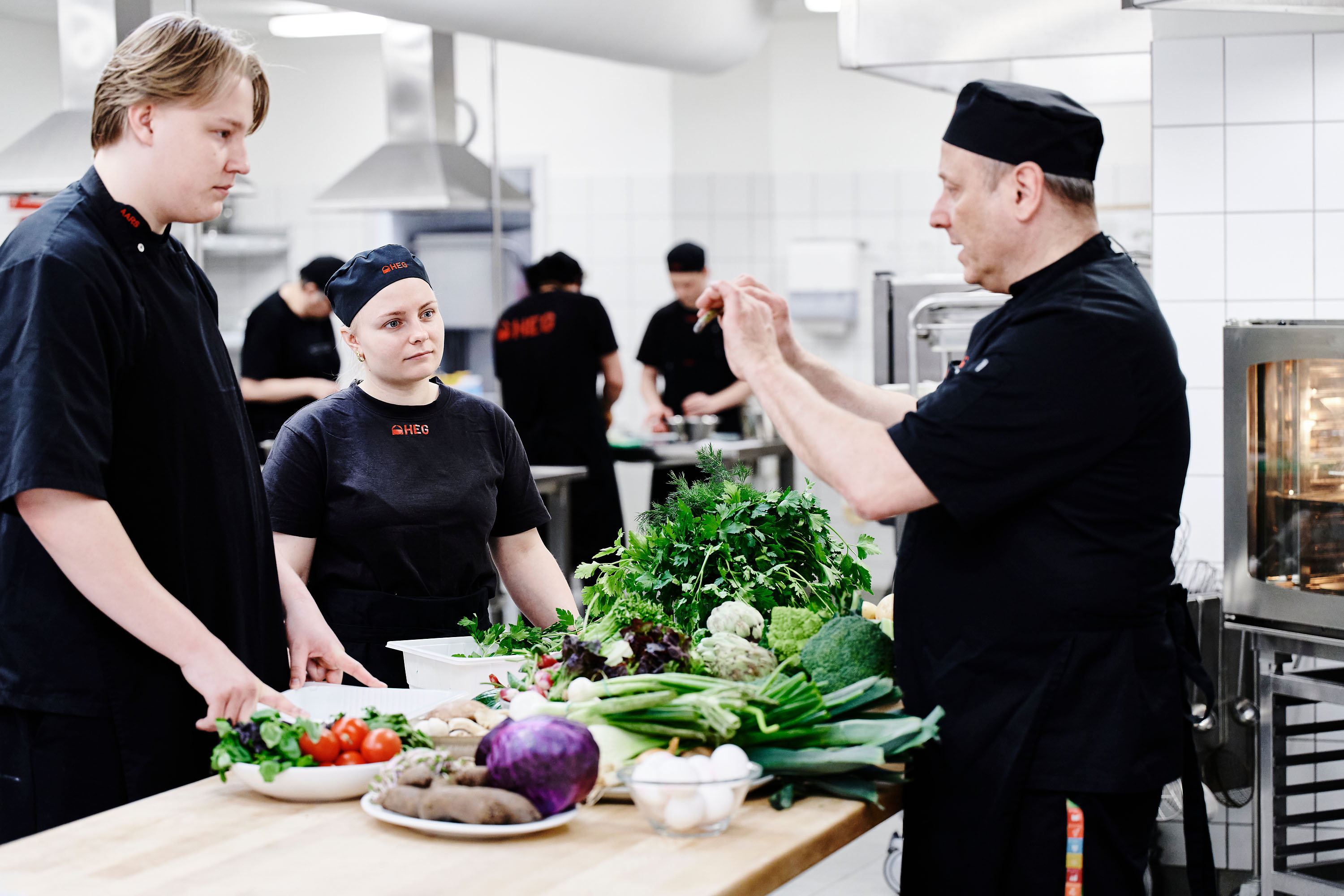 En vigtig del af arbejdet som ernæringsassistent går ud på at tilrettelægge fremstillingen af sund kost til mange mennesker.